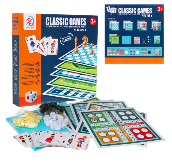 Herní set 16 v 1 je určen pro děti od 3 let. Skvělý způsob, jak společně strávit volný čas. Každý si v ní najde něco pro sebe, na výběr je až 16 her a spousta příslušenství potřebného k jejich hraní.