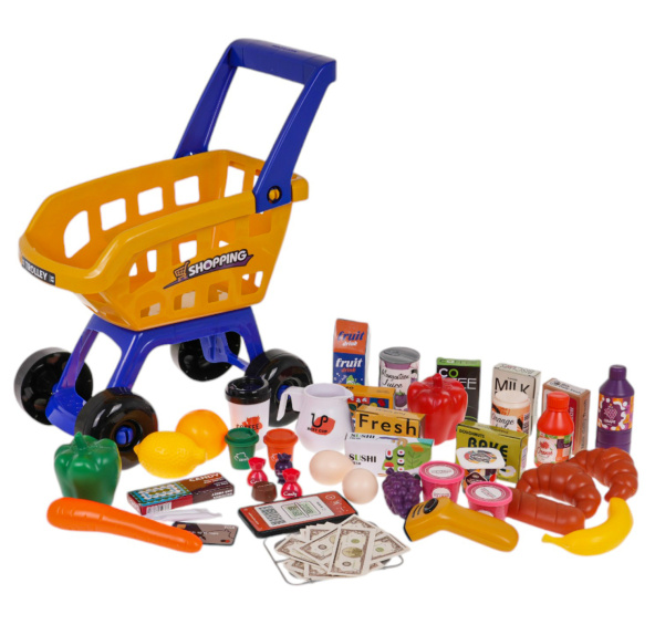 Bezpečný, barevný, interaktivní set supermarket – obchod, se skládá ze 64 prvků a je určen pro děti od 3 let. Sada má zvukový a světelný efekt (pokladna s čtečkou karet, skener). Pokladna je napájena dvěma bateriemi typu AA 1,5 V (nejsou součástí balení), skener je napájen dvěma bateriemi typu AAA 1,5 V (nejsou součástí balení). Obchod - market má otevírací pokladnu, čtečku karet, skener, mikrofon, váhu, poličky, ledničku a velmi mnoho atrap potravinových produktů. K sadě je také připojen velký nákupní vozík. Hra na obchod rozvíjí u Vašeho dítěte kreativní myšlení, pomáhá při učení počítání, třídění předmětů, procvičuje chování v každodenních situacích.