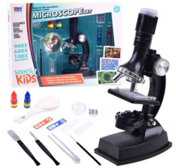 Objektivy umožňují zvětšení 100x/600x/900x, Mikroskop funguje na 2 baterie AA (nejsou součástí dodávky). Sada je vyrobena velmi pečlivě a přesně. Mikroskop z plastu. Mikroskop má zabudovanou žárovku, která osvětluje prohlížené vzorky. Dokonalá sada pro malé vědce. S tímto mikroskopem zažije vaše dítě nezapomenutelné hodiny plné nových objevů mikrosvěta. Prostřednictvím hry můžete rozvíjet zvídavost dítěte. Objevte jeho vášně.