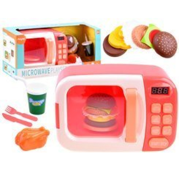 Mikrovlnná trouba nesmí chybět v žádné dětské kuchyni. Mikrovlnná trouba se šesti možnostmi ohřevu jídla připraví jídlo vždy včas. Hračka se velmi snadno používá, má možnost volby "ohřevu" výrobku (croissant, hamburger, pizza, ryba, steak, kuře), displej s časem provozu a tlačítko start/stop. Teď už bude ohřívání jídla hračka. Jednoduše vložte kuře dovnitř, stiskněte tlačítko a sledujte, jak se kuře v mikrovlnné troubě otáčí.