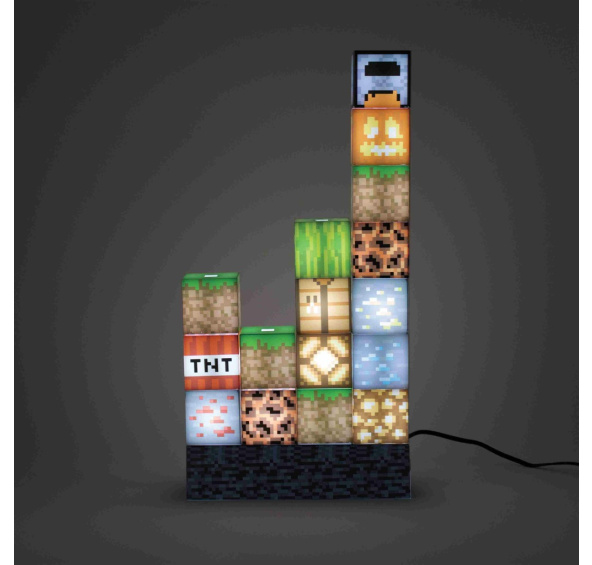 Sada 16 kostek s motivem Minecraft, kterou můžete skládat dle vlastního uvážení. Součáastí balení je svítící základna.