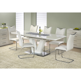 Popis produktu MISTRAL stół biały połysk (3p=1szt)stół rozkładany, wymiary: 160-220/90/77 cm, materiał: MDF lakierowany / stal nierdzewna, kolor: biały