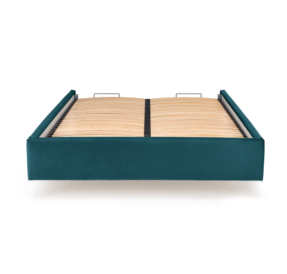 korpus do łóżka MODULO z pojemnikiem na pościel i podnoszonym stelażem, wymiary : 208/175/44cm, odstęp między listwami stelaża 2,5 cm umożiwia zastosowanie wszyskich typów materacy, materiał: tkanina - velvet, kolor: ciemny zielony (Monolith 37), łóżko bez materaca, w opcji materac POLARIS 160 lub SYRIUSZ 160. Do skompletowania kompletnego łóżka należy zamówić korpus łóżka, wezgłowie łóżka oraz nóźki do łóżka.