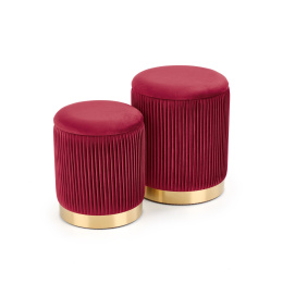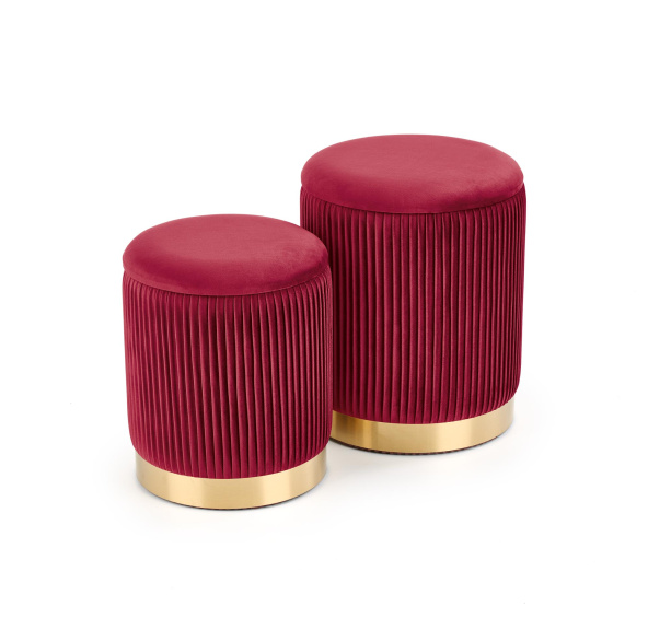 Popis produktu MONTY zestaw 2 puf, bordowy (1p=2kpl)wymiary: 36/44 oraz 31/38 cm, zestaw 2 puf, materiał: tkanina / stal chromowana, kolor: bordowy / złoty