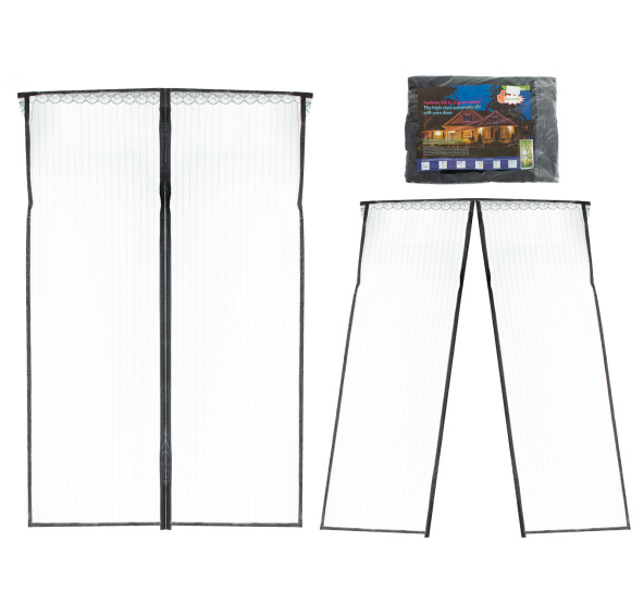Moskytiéra se skládá ze dvou částí. Je důležité, aby části s magnety byly uprostřed - tím se zajistí, že se moskytiéra při průchodu automaticky otevře a zavře.