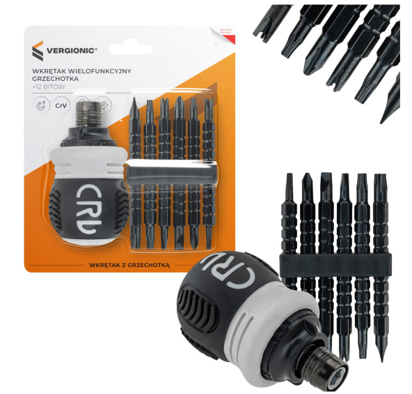 Popis produktu Multifunkční ráčnový šroubovák + 12 bitů