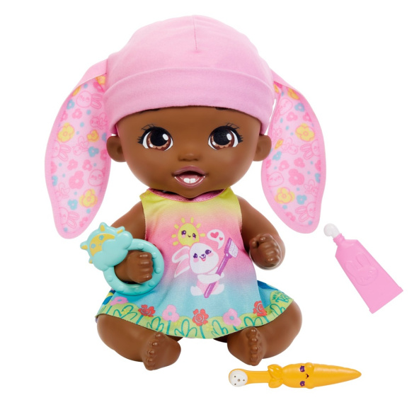 Tyto herní sety panenek My Garden Baby™ nabízí různé způsoby pečující hry! Děti mohou krmit a přebalovat motýlí miminka (stačí naplnit lahvičku vodou, nakrmit miminko a pak vyměnit opakovaně použitelnou plenku). Nebo pomáhat králičím miminkům čistit zuby a sledovat, jak se jejich hlavičky pohybují ze strany na stranu. Miminka motýlků a králíčků My Garden Baby™ mají heboučká křídla a ouška, která se dají zavinout a pak se k nim přitulit!