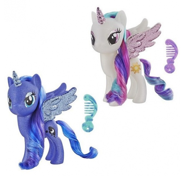 Představujte si zábavné příběhy vedle magických spoluvládců Equestrie s těmito nádheně třpytivými postavami princezen Luny a Celestie (každá se prodává samostatně). Princezny mají krásné rohy a křídla, která jiskří a lesknou se třpytkami! Děti mohou použít hřebínek ke kartáčování dlouhých hřív a ocasů. Jejich barevné vlasy a třpytivé prvky dávají královské princezně Celestii a princezně Luně nádherný, magický vzhled.