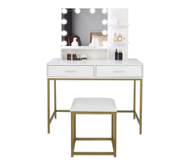 Dopřejte si každodenní dávku luxusu s tímto moderním toaletním stolkem se zrcadlem a LED osvětlením. Stylový bílý stolek v matném provedení se stane nejen praktickým, ale i estetickým doplňkem každé ložnice či šatny. Dominantou stolku je velké zrcadlo s 10 LED žárovkami. Díky tomu si vždy zajistíte ideální osvětlení pro líčení, úpravu vlasů nebo večerní péči o pleť.