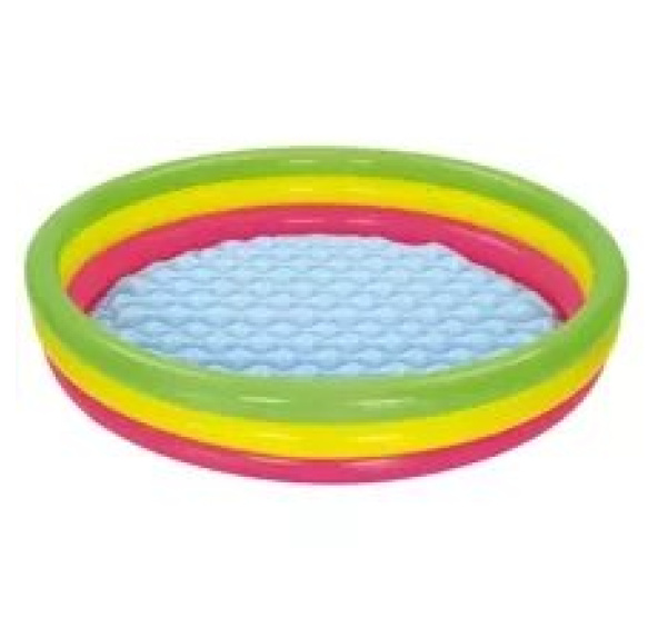 - 3 PRSTENY - bazén se skládá ze tří barevných prstenců. Každý z nich je čerpán samostatně. Díky tomu je bazén stabilnější. Nemusíme nafukovat všechny kruhy, aby si miminko mohlo jít hrát.