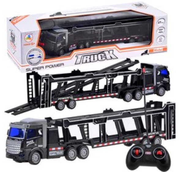 Nákladní auto s přívěsem na dálkové ovládání je hračka, se kterou se nelze nudit. Barevné provedení vozu připomíná vozidla na skutečných silnicích. Vůz se ovládá dálkovým ovladačem s frekvencí 27 MHz. Praktické dálkové ovládání s anténou padne do každé ruky, umožňuje jízdu vpřed a vzad, zatáčení doprava a doleva. Díky chytré konstrukci se přívěs nákladního vozu "láme" jako u skutečného automobilu. Vůz proto zaparkuje na jakémkoli parkovišti. Zadní dveře přívěsu lze otevřít, jeho horní podlahu lze spustit, aby se přepravovaná vozidla mohla odvalit, a celý přívěs lze odpojit od tahače.