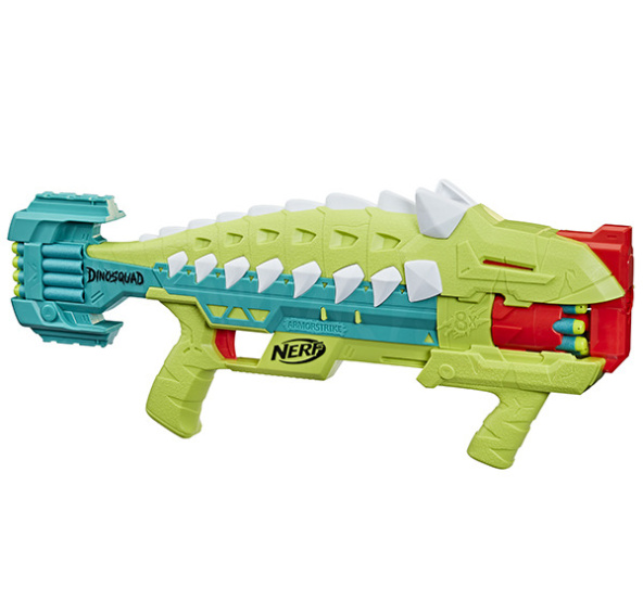 Rozšiřte řady elitní jednotky DinoSquad a spojte síly s legendárními dinosaury! Využijte mimořádnou sílu dinosauřích titánů a zažijte s nimi úžasná dobrodružství! Tento blástr Nerf DinoSquad obsahuje rotační bubnový zásobník na 8 pěnových nábojů, které můžete všechny použít proti soupeřům. Natahování probíhá pomocí gripu pumpováním dozadu a dopředu. Určitě oceníte i prostor pro náhradní pěnové náboje na pažbě, které umožní znovu rychle nabít zásobník. V ceně je 16 pěnových nábojů Nerf Elite.