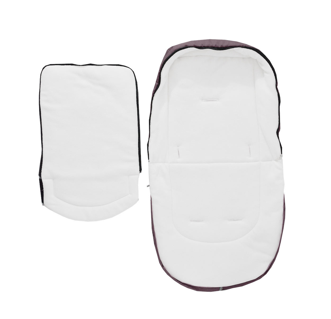 Dětský fusak má rozepínací zip, otvory na 5-bodové bezpečnostní pásy a gumové úchytky umožňující připevnění ke kočárku.