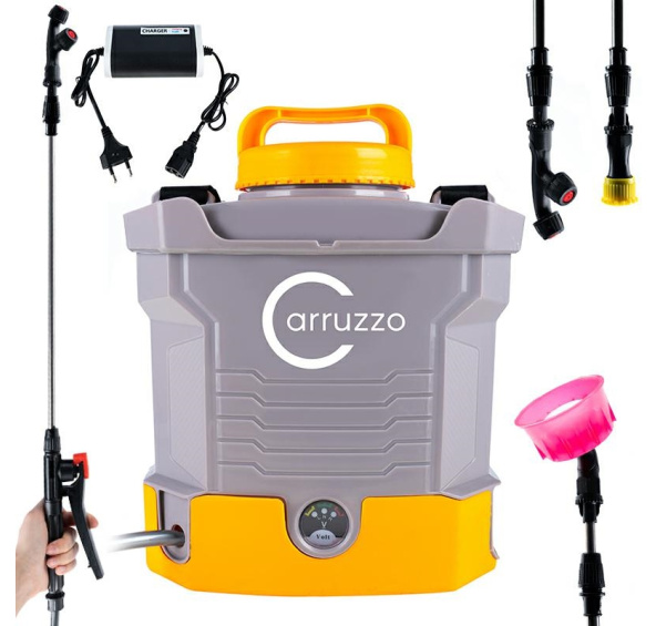 Tlakový postřikovač s elektrickým čerpadlem je mimořádně účinné zařízení nezbytné v každé zahradě. Díky vestavěné baterii umožňuje práci na místech bez přístupu k elektrické síti. Pohodlné popruhy umožňují nošení zařízení na zádech nebo na rameni. Postřikovač může být používán m.in. pro rozptylování hnojiv a prostředků na ochranu rostlin. Značka: Carruzzo Specifikace: délka délka kopí: 30-50 cm délka hadice: 120 cm materiál nádrže: PP napájení: akumulátor 2Ah regulace tlaku pracovní tlak: cca. 2-4Bar / 0,2-0,4MPa průtok: 3,6l/min kapacita nádrže: 5l 3 trysky pro různé typy postřiků s regulací průtoku kapaliny průměrná doba nabíjení akumulátoru: 6-8h rozměry nádrže: 29x18x36cm síťová nabíječka v sadě až 2,5h práce na jedno nabití baterie rozměry balení: 30x19,5x37cm Počet ks. na paletě: 88