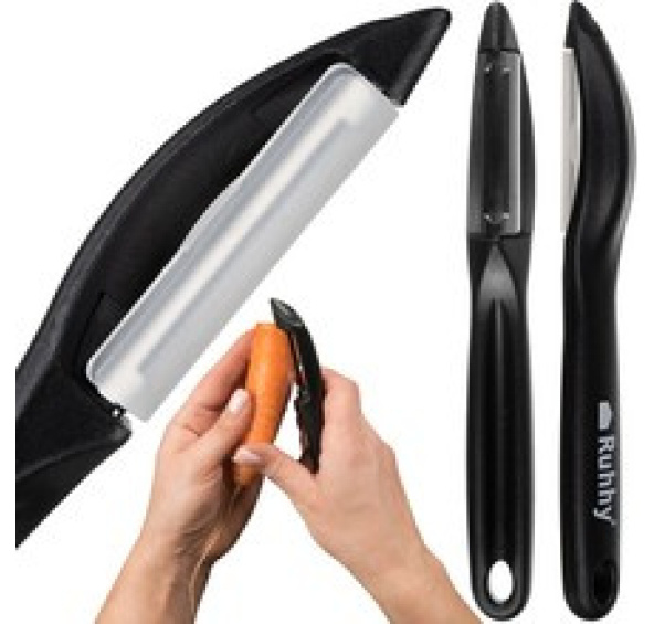 - KRYT NA NOŽE - škrabka na zeleninu s plastovým krytem čepele je praktickou a bezpečnou pomůckou pro každodenní kuchyňské práce. Umožňuje bezpečné uložení nářadí po práci .