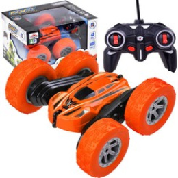 Oboustranné zelené auto STUNT CAR s dálkovým ovládáním je ideální pro všechny fanoušky autíček na dálkové ovládání. Vůz je určen pro rychlou jízdu kombinovanou s kaskadérskými kousky. Díky své konstrukci se auto může otáčet o 180° a 360°a pokračovat v jízdě. Vrchol se stává spodkem! Má velká pogumovaná kola se vzorkem, která si poradí s nerovným terénem. Jsou uloženy na ložiskách, což vozu umožňuje provádět úžasné kaskadérské kousky. Je to naprosto šílená hračka. Řízení takového vozu rozhodně rychle neomrzí.
