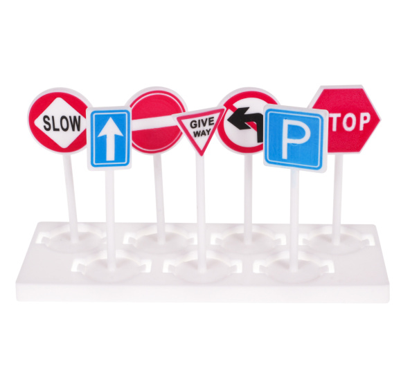 | - nákladní auto s katapultem, - 2 x vozidlo, - 7 x dopravní značky. |