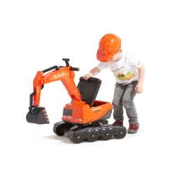 Popis produktu Odstrkovadlo - bagr oranžový s odklopným sedátkem + přilba