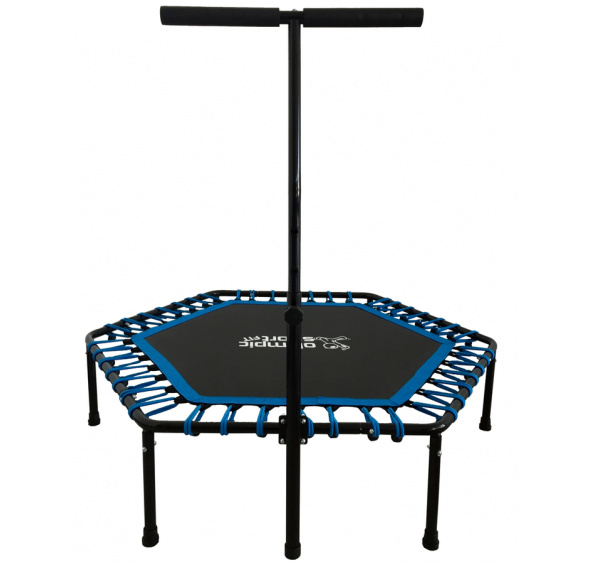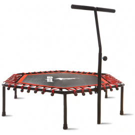 Trampolína Fitness 130 cm (4 ft) je opatřena madlem pro přidržení, která se při Jumping lekci často využívají. Madlo lze namontovat a zase demontovat.