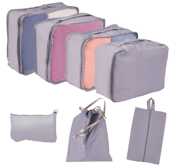 Praktické organizéry do kufru - nepostradatelné na každé cestě! Výrazně vám usnadní udržení pořádku uvnitř zavazadla. Sada obsahuje 7 organizérů různých velikostí - jsou zde čtyři kostky na oblečení, taška, organizér na boty, toaletní kufřík a malé pouzdro na drobnosti. Všechny předměty v sadě mají šedou barvu.