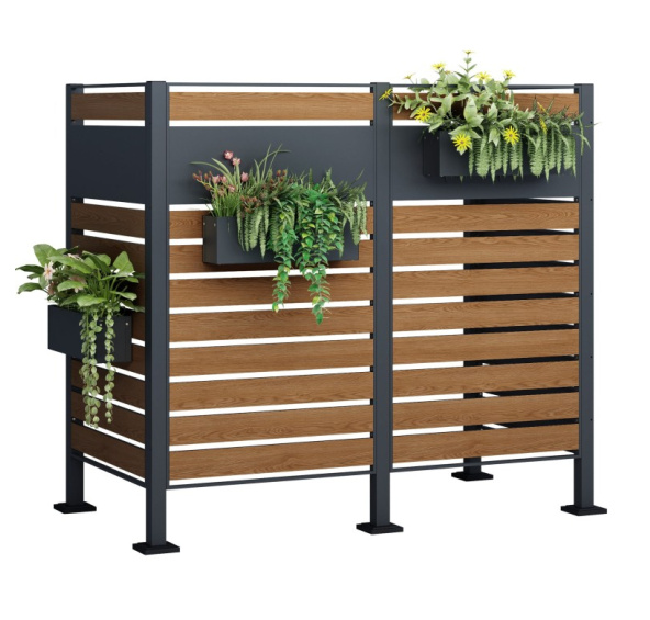 Popis produktu Kryt koše - 4 panelyMateriály odolné vůči měnícím se povětrnostním podmínkám, trvanlivé a bezúdržbové. Moderní, estetický design zástavby. Lehká, ale robustní konstrukce umožňuje, aby konstrukci přemisťovali dva lidé