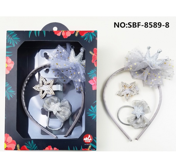 Popis produktu Ozdoby do vlasůSada ozdob do vlasů. Součástí sady je čelenka, sponka a gumička do vlasů.