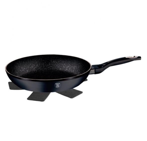 Pánev 20x4,2 cm Materiál: kovaný hliník Indukce - Ano Mramorový povrch Bonus: Chránič vůči poškození - termostatická podložka, Barva: černá - Snímač teploty indikuje moment, kdy je správná teplota na zahájení smažení.