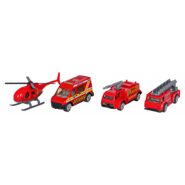 - 3 hasičská vozidla (s žebříkem, s vodním dělem, sanitka),