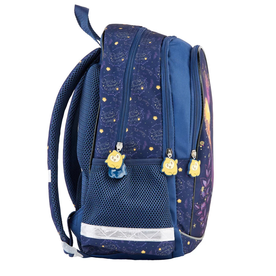 Školní batoh je vyrobený z velmi kvalitního polyesteru, díky němuž je vysoce odolný a nepromokavý.