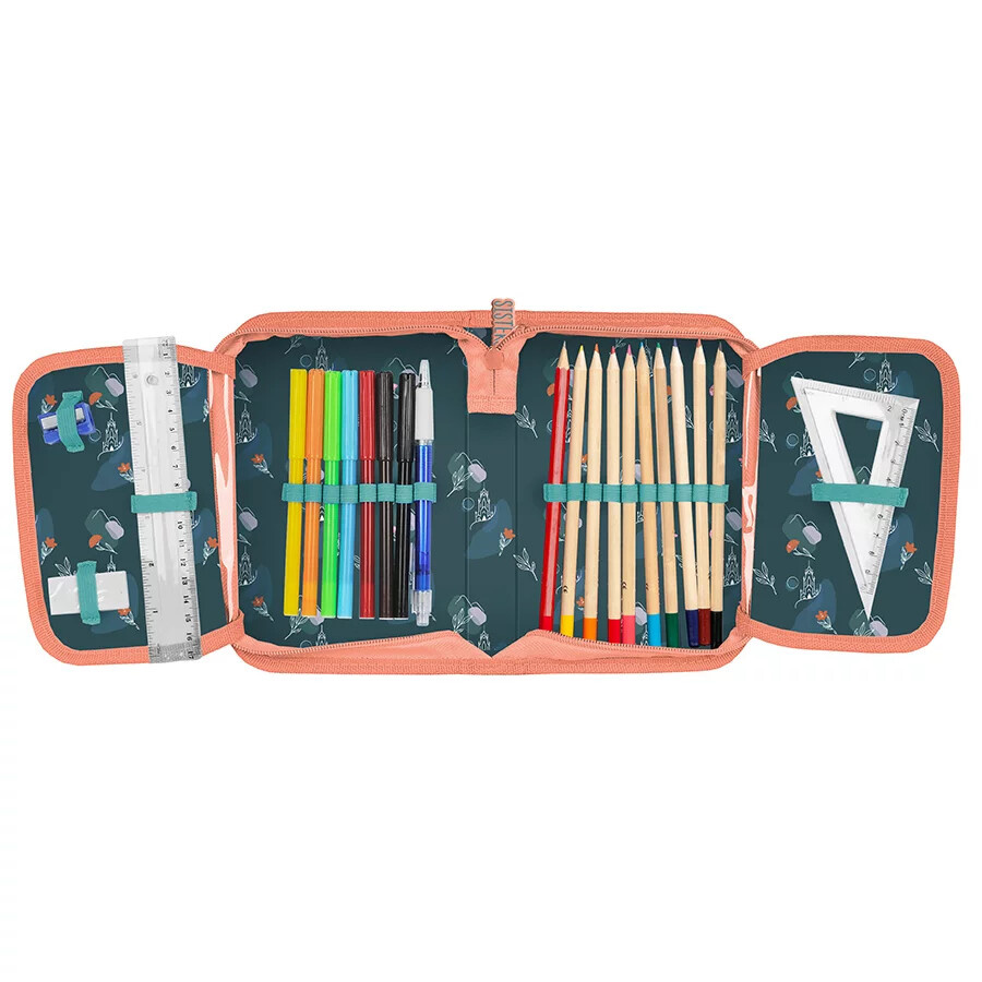 Jednopatrový penál s velkým prostorem pro psací potřeby a 2 chlopněmi, je ideální pro první stupeň základní školy.