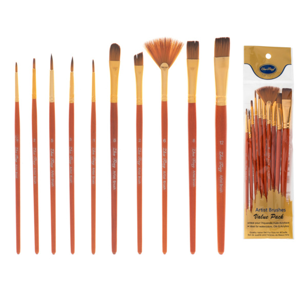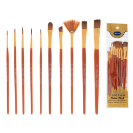 Skvělá sada štětců. Při malování poskytují přesné a hladké krytí. Hroty mají různou tloušťku, což umožňuje přesné dokončení práce. Materiál: nylonová vlna. Sada obsahuje: 10ks kartáčů. Délka kartáče: 17-19 cm.