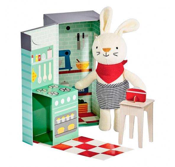 V této kuchyni potkáte králíčka Rubieho, který miluje vaření a pečení, rád bude vařit spolu s vámi! Má měkkou plyšovou srst a milý úsměv. Vytvořte jídlo, které je velké tak akorát pro Rubieho díky přiložené kuchařce. Recept je opravdový, takže jej můžete uvařit i pro sebe! Hlavní vlastnosti Plyšový kamarád pro dítěSpolečník pro čtení před spaním3D nábytek, balení funguje také jako herní scénaSestavte vlastní kuchařku pro Rubieho podle návoduPerfektní pro představivou hru