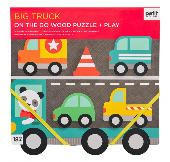 Popis produktu Petit Collage Robustní dřevěné puzzle Big TruckRozměry: 21x21x1,8 cm Věk: 18m+ Materiál: dřevo, recyklovaný papír Robustné dřevěné puzzle. Hlavní vlastnosti: 5 dřevěných dílků2 hrací scényVhodné pro děti od 18 měsíců