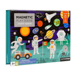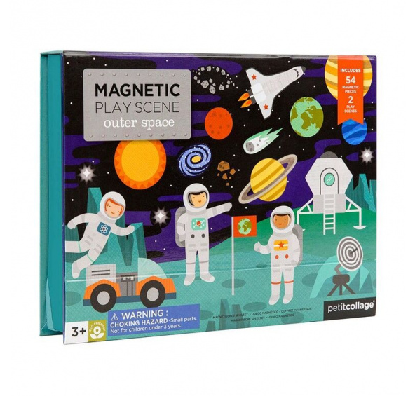 Poškozená papírová krabička. Obsah krabičky neporušen. Nadekorujte dějiště ve vesmíru nebo na vesmírné stanici. Tento přenosný hrací set má dvě pozadí, z kterých si můžete vybrat a také přes 54 magnetických dílků. Magnetickou scénku lze postavit díky zarážkám v krabici. Kreativní hračka s nekonečnými možnostmi kombinací a scén. Krabice ve stylu stojanu obsahuje elastickou gumičku, kterou můžete použít pro rychlý úklid. Pro děti od 3 let věku. Hlavní vlastnosti: 50 magnetických dílků 2 magnetické tabulkyHračka s pevnou kontrukcí vyrobená z recyklovaných materiálů potištěných rostlinnými inkoustySplňuje všechny bezpečnostní normy. Hlavním posláním americké firmy Petitcollage je skloubení moderního designu, ekologie a udržitelnosti. Originální výrobky jsou navrhované v Kalifornii a v současné době jsou prodávány po celém světě. Výrobky jsou vyrobeny z recyklovaných materiálů, bambusu nebo kvalitního certifikovaného dřeva. Veškeré používané barvy při výrobě jsou na rostlinné bázi a šetrné k životnímu prostředí. Výrobky jsou navrženy tak, aby rostly s Vašimi dětmi a vytvářely také svým designem krásný a útulný domov.