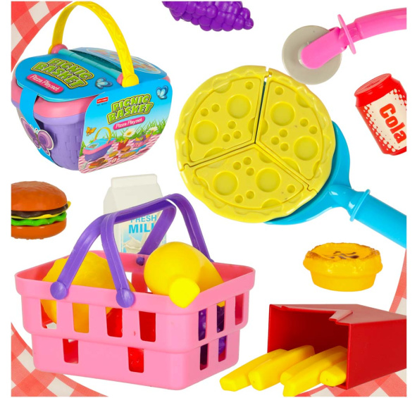 Sada umožňuje batoleti, aby samo sestavilo jídelníček, servírovalo jídlo a pohostilo rodinu nebo hosty. Odolné a bezpečné materiály a realistický vzhled prvků usnadňují dítěti převzít roli kuchaře. Piknikový koš s pizzou ahamburgerem učí spolupráci, rozvíjí motoriku a seznamuje s různými druhy potravin - od rychlého občerstvení až po čerstvé ovoce.