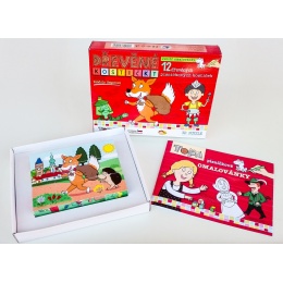 Písničkové kostičky – 6 kostiček pro nejmenší – balení kostiček totiž navíc obsahuje krásné omalovánky od Venduly Hegerové a texty lidových písniček, které jsou vyobrazeny na kostičkách.