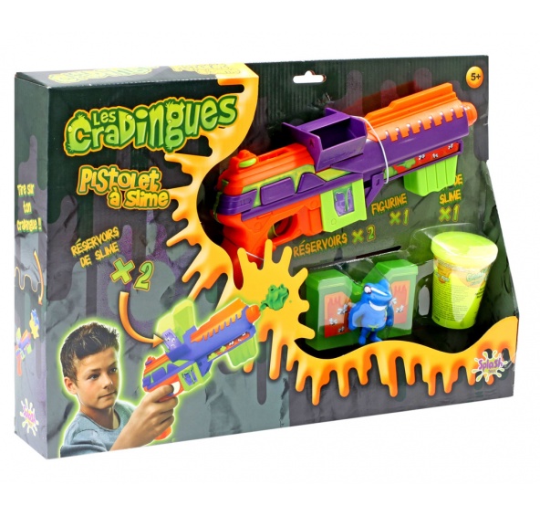 Pistole na sliz. Sliz můžete vystřelit až do vzdálenosti 5m. V případě, že dojde sliz, který je v balení přiložen, lze použít, jakýkoliv jiný sliz. Součástí balení je pistole, sliz a figurka slizouna.