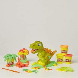 Fantazie bude s tímto veselým dinosaurem přímo vřít! Dinosaurus Rex je připraven ke hře se zábavnými funkcemi, příslušenstvím a 4 kelímky modelíny Play-Doh. Vytvořte jazyk a pusu tím, že naplníte dinosaurova záda modelínou Play-Doh a zatlačíte na ocas, který mimo to aktivuje pohyb čelisti! Pro ještě větší dino-zábavu vytvořte stopy řezačkou a vytlačte Play-Doh lávu přímo ze sopky!