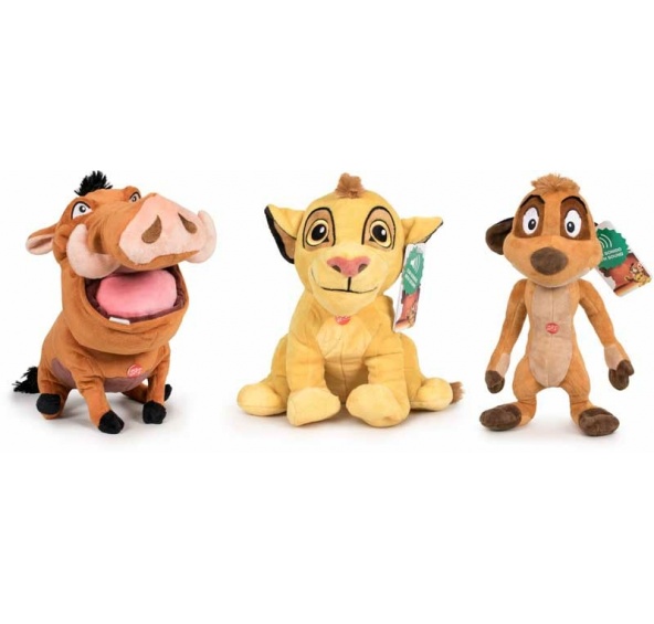Plyšové zvířátko z oblíbeného dětského filmu Lví král potěší každého milovníka zvířat. Plyšové zvířátko měří 30 cm a vydává zvuk. Vybrat si můžete ze tří druhů zvířátek – Simba, Pumba nebo Timon. Vyrobeno z kvalitní plyše.