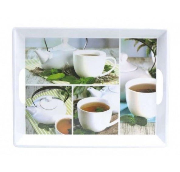 Popis produktu Podnos servírovací Hot Drinks bílá - EXCELLENT- materiál: plast- pohodlné přenášení díky rukojetím- rozměry: 50 x 37 cm- výška okraje: 6 cm- design: Hot drinks- v nabídce 4 různé barvy