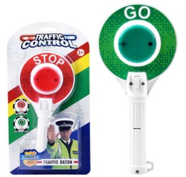 Lízátko je oboustranné, na jedné straně svítí zelené světlo s nápisem GO, na druhé straně svítí červené světlo s nápisem STOP.