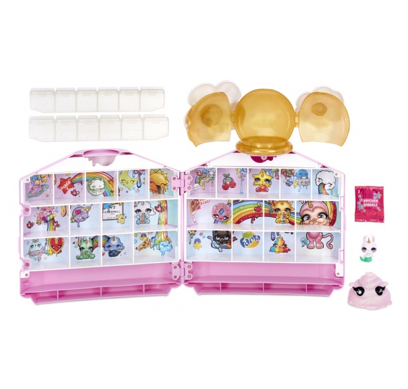 Vystav svoje Poopsie postavičky v třpytivém Displeji, který vypadá jako parfém. Můžeš do něj uložit více než 25 postaviček Cutie Tooties, Sparkly Critters nebo přívěsků na sliz ve tvaru hovínka. Displej obsahuje jedno exkluzivní Cutie Tootie, jeden balíček se třpytkami a boxíky pro uskladnění více než 12 slizů. Poličky uvnitř Displeje můžeš upravit dle svých potřeb.