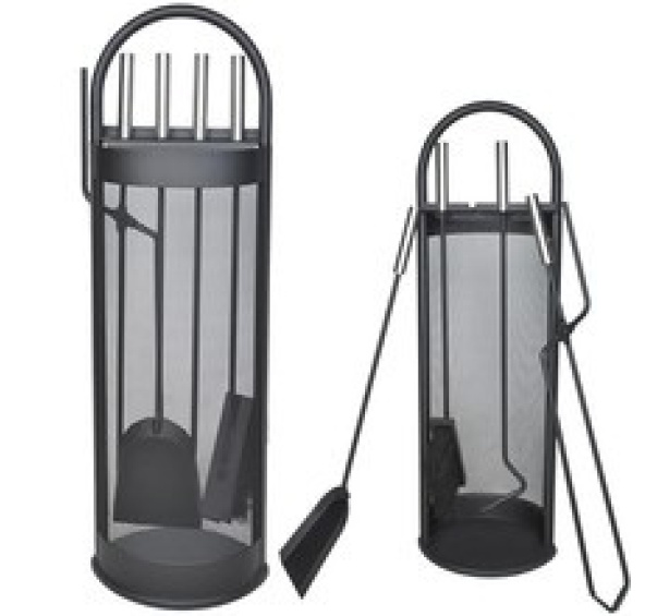 5-dílná sada krbového náčiní s moderním designem. Odolný, vyrobený z oceli a snadno se používá. Sada se snadno udržuje v čistotě díky stojánku vybavenému stojánkem, který udrží nečistoty a popel od nářadí a váš domov tak zůstane čistý. Kryt chrání příslušenství před jiskrami z krbu.