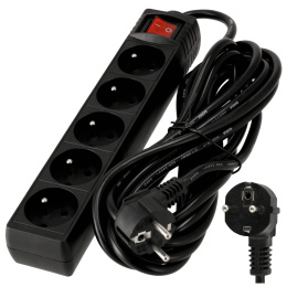 Prodlužovačka 5 zásuvek 5m černá IP20 s vypínačem 3680W
