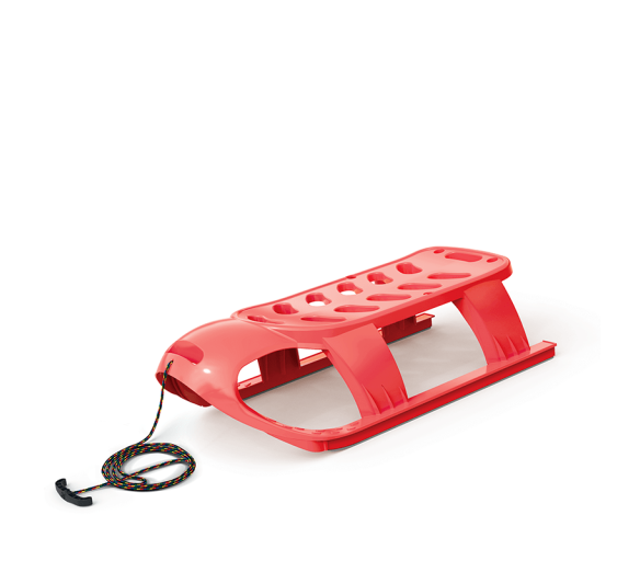 Sáně jsou vyrobené z vysoce odolného plastu a opatřené ocelovými skluznicemi, které zajišťují perfektní skluz po sněhu.