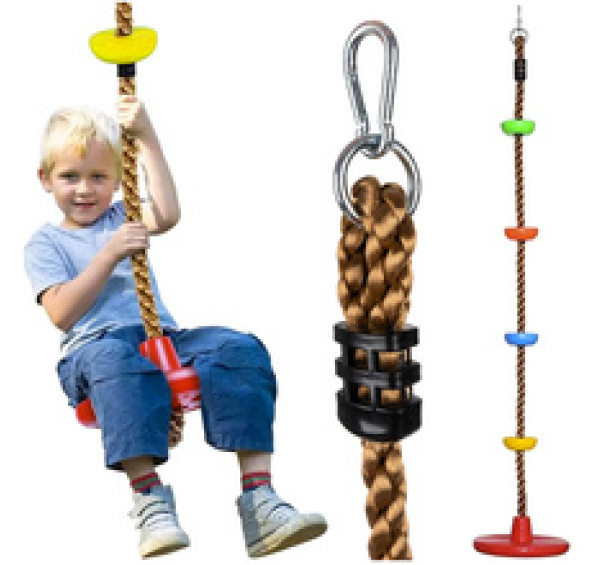 2v1 - houpačka a šplhací lano – perfektní řešení pro děti, které milují jak houpání, tak fyzickou aktivitu, lze jej použít jako kotoučovou houpačku , relaxaci venku nebo jako horolezecké lano , podporující motorický rozvoj, sílu rukou a pohybovou koordinaci
