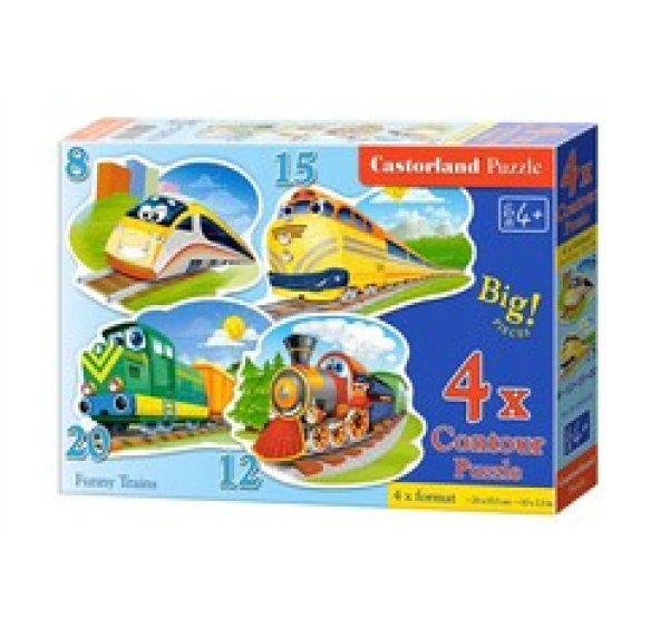 Puzzle 4 x Obrys 8+12+15+20 dílků je skládačka pro nejmenší, která se skládá ze čtyř samostatných obrázků různé obtížnosti. Živé barvy, dobře zvolený design a velké dílky usnadní malým dětem sestavení jakéhokoli obrázku. Tyto hádanky vás zvou k prozkoumání fascinujícího světa zvířecích příběhů a motorismu. Pomáhají rozvíjet asociační schopnosti a zvyšují manuální zručnost.