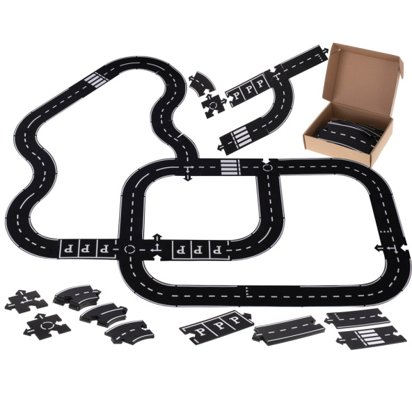 Fantastická skládačka 2 v 1 - poslouží jako zábavné puzzle, ale také jako autodráha pro všechna dětská autíčka. Rozvíjí manuální zručnost a kreativitu. Materiál: PVC a guma. Šířka skládačky: 8.5 cm Tloušťka: 3 mm. Počet prvků: 40.