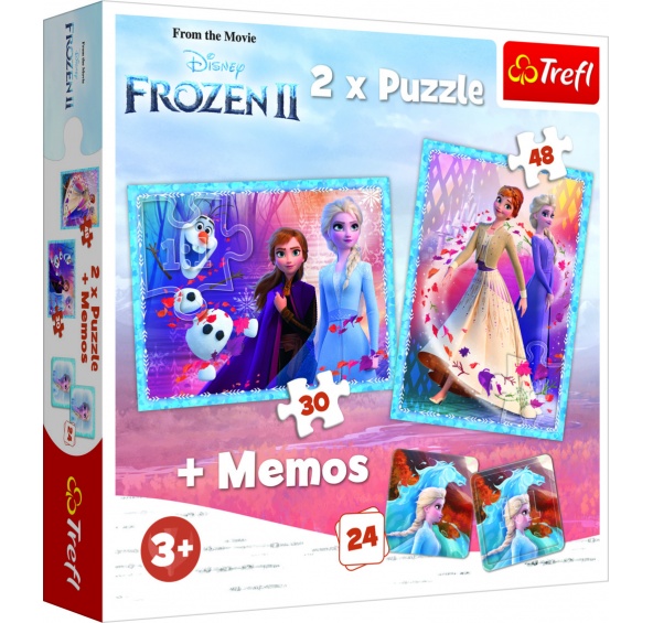Puzzle (obsahují 30 a 48 dílků) a pexeso, Frozen 2