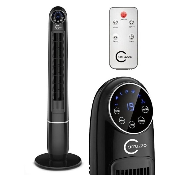 Sloupový ventilátor s moderním designem. Síla foukání zajišťuje příjemné chlazení. Solidní základna zabraňuje pádu a oscilace umožňuje rovnoměrné chlazení celé místnosti. Na rozdíl od standardních ventilátorů, které foukají vzduch pouze ve výšce lopatek, sloupové ventilátory foukají vzduch po celé své výšce. Značka: Carruzzo Specifikace: Napájení: AC 220-240V 50Hz Výkon: 60W Výška: 120cm Průměr základny: 34cm dálkový ovladač časovač (1-12h) oscilace regulace síly foukání teploměr 3 režimy provozu: noční, přirozený a kontinuální délka. napájecí kabel: cca. 135 cm rozměry výstupní mřížky: 51x8 cm Rozměry kartonu: 124,5x23x21,5 cm Počet kusů. na paletě: 27